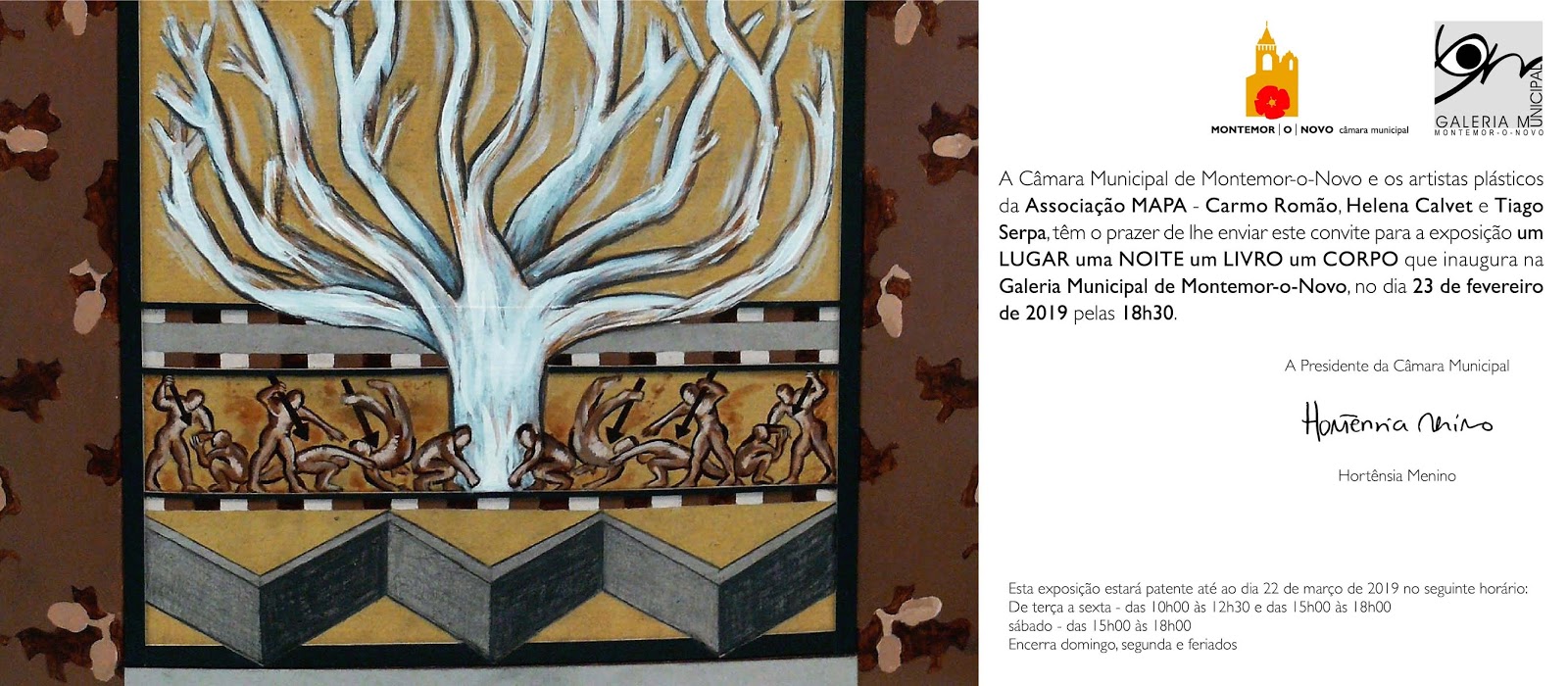 23 de Fevereiro de 2019 pelas 19h30 na Galeria Municipal de Montemor-o-Novo.